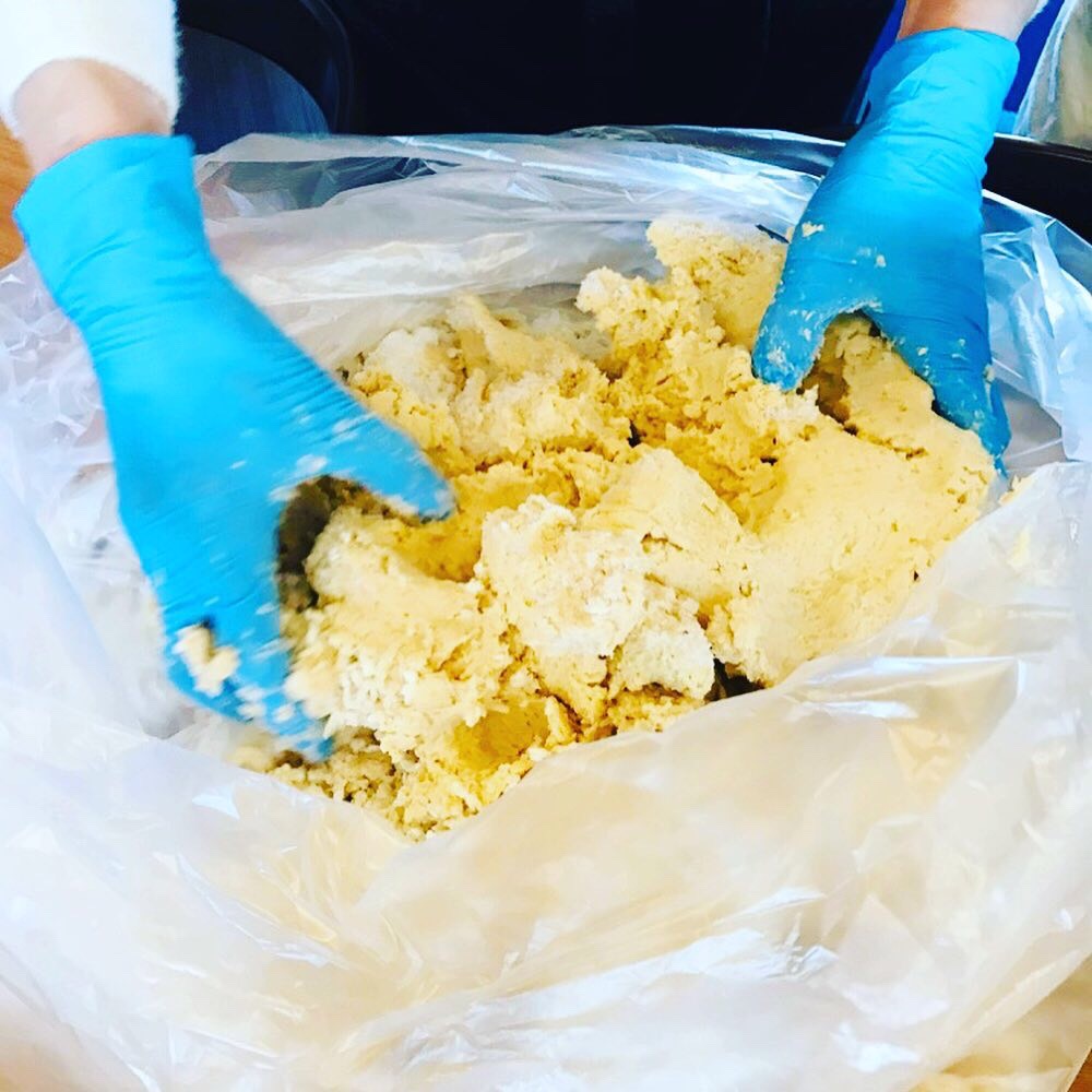 お客様のお味噌作りの様子。楽しんで作っていただきました♪